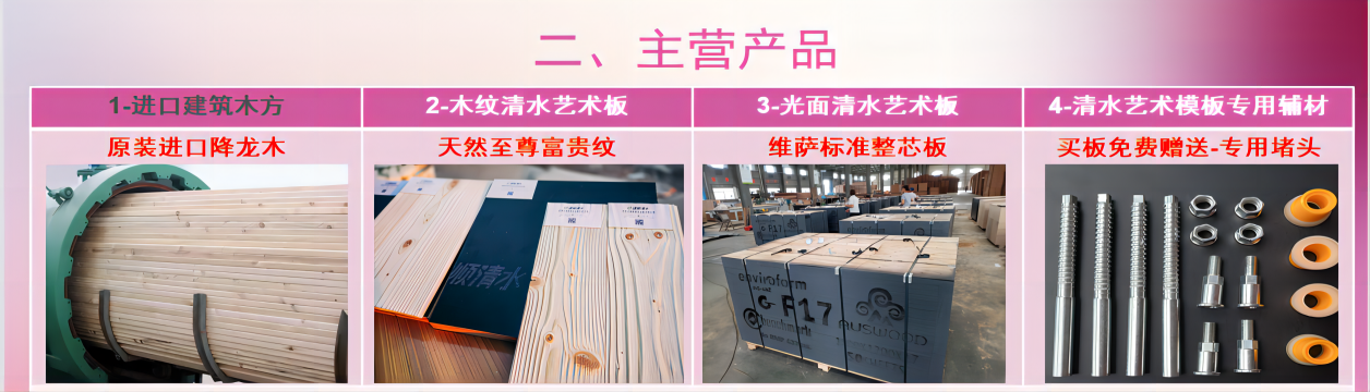 1-新时代的中国青年,建顺公司主营产品2-清水模板的功用东莞市建顺建筑设备有限公司是一家集建筑模板研发、生产、销售及工程运营于一体的企业。拥有广东建顺清砼建筑工程有限公司、重庆市建顺清砼建材科技有限公司等多家公司,与多家建材企业合资生产高端清水模板;与太尔(中国)、中建、中铁、中交、中冶等集团企业结盟为长期战略合作伙伴。广东建顺清砼建筑工程有限公司有着从事清水混凝土工程的技术咨询、设计、深划和项目施工与指导等一系列等全套主体施工体系的专业队伍,擅长各种曲面、双曲面、多曲面等异型清水混凝土施工。旗下的"JS(建顺清水)"牌建筑模板是世界著名建筑模板“维萨”牌建筑模板的嫡系产品,与“维萨”模板一样非常注重于各原材、工艺与管理,光面清水模板既克服了维萨模的皱褶现象(国外允许的自然清水砼面),因工艺改进从而又大大降低了清砼瑕疵的产生概率,但市场价格却与维萨模板在不同档位上。公司产品结构完整,涵盖新型模架体系、清水建筑配件和光面、曲面、圆柱面、木纹、竹纹、席纹等多类清水板、PPR板、普...